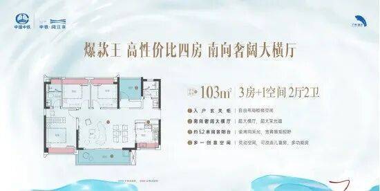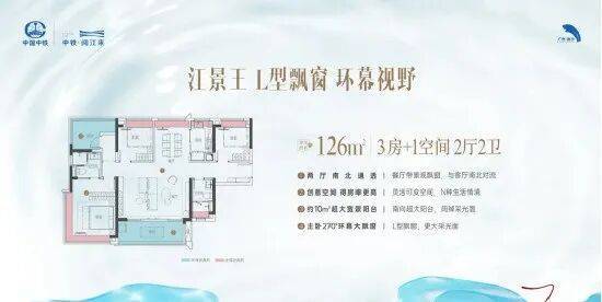 有建面约88 - 126㎡的三/四房可选。88㎡“上车王”户型,同等面积拓展空间更大,还多一卫生间;103㎡“爆款王”横厅设计,约5.2米大阳台采光面,超6米阔景阳台,动静分区;126㎡“江景王”,南向无遮挡江景视野 ,主卧L型双面采光 。