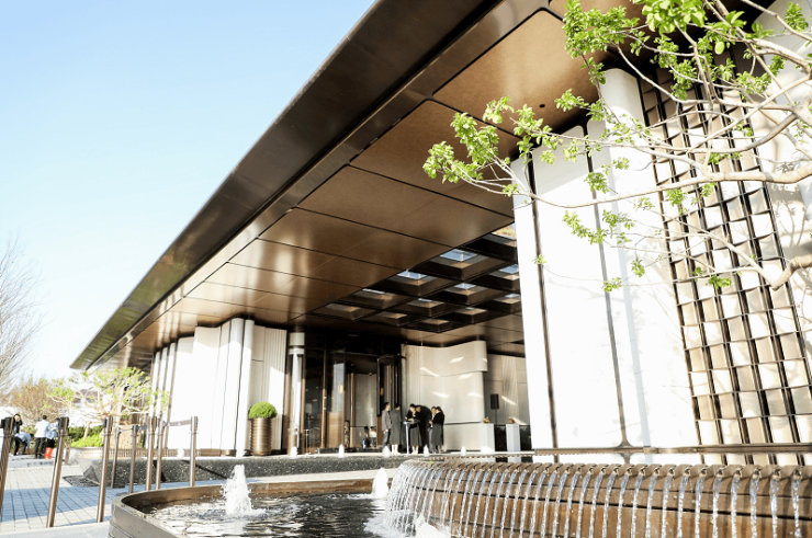 项目选用了约100米精奢酒店式落客礼仪大门,搭配奢石和名贵树种,高级感满满;
