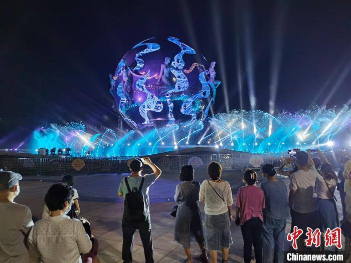 “天下排名前列滩”广西北海银滩灯光秀炫彩夺目
