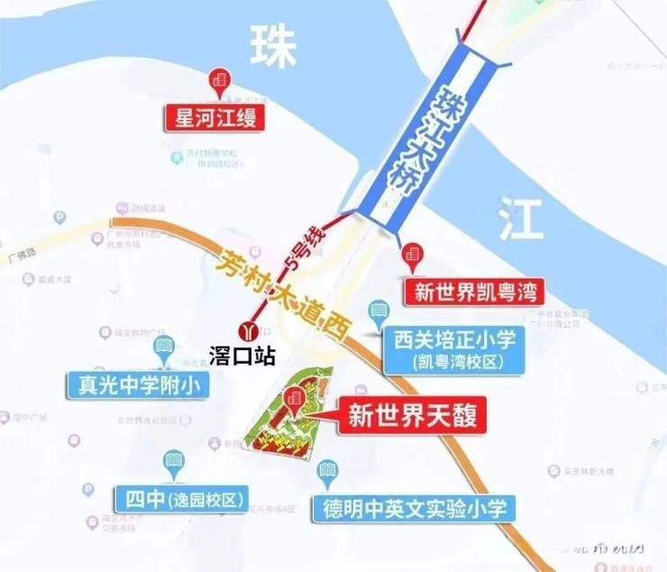 项目位于滘口板块,临近白鹅潭CBD,荔湾区目前在建的华润万象城商业,滨水街区太古里、太古汇,三馆合一都在附近,旁边就是5号线的首发站,去往珠江新城、金融城等地都无需换乘,相对来说这一片居住设施还是比较成熟的,还是豪华交标!