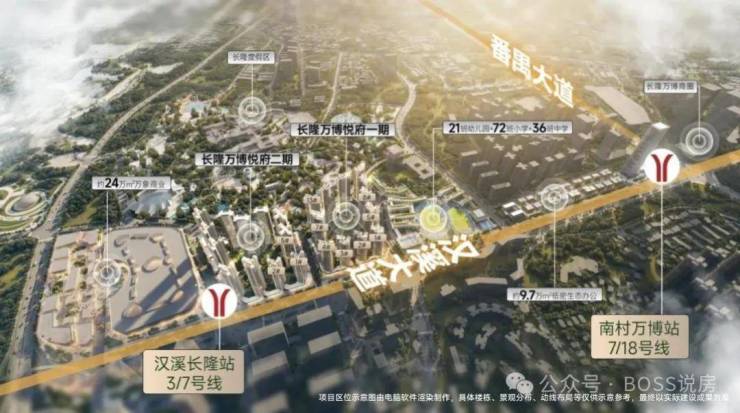 番禺“黄金十字”的产业发展轴线:“十四五”中指出,番禺区将围绕南大干线产业创新轴和番禺大道文商旅融合发展轴,形成番禺“黄金十字”,长隆万博板块,是2个发展轴的交汇点。(信息来源:中国指数研究院、广州市番禺区人民政府、新快报)