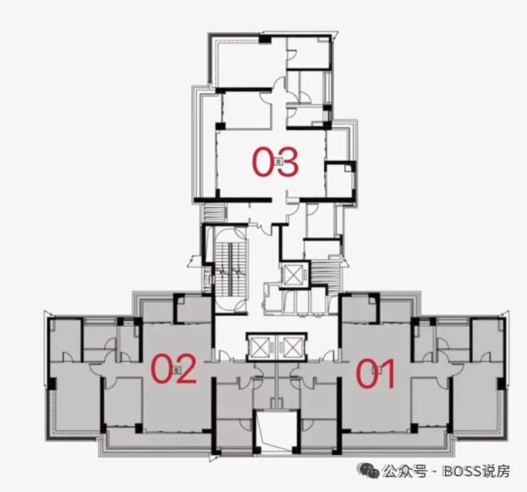 该户型自己一条梯腿,私密性比较强,这个户型做到五开间东南向,横厅设计,采光更好也更舒适。
