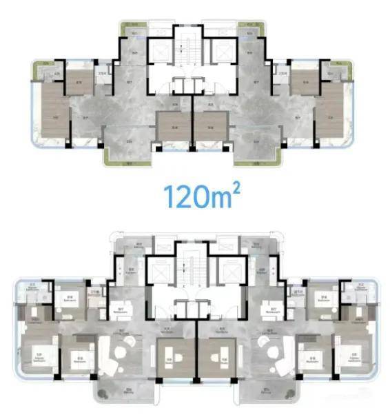 其中120㎡四房两厅两卫是刚需改善的热门款,户型方正,入门有独立玄关保护隐私,U型厨房操作动线合理,洗切炒互不干扰,三个次卧面积均衡,可灵活作为儿童房、老人房或书房,适合三口之家或三代同堂居住。