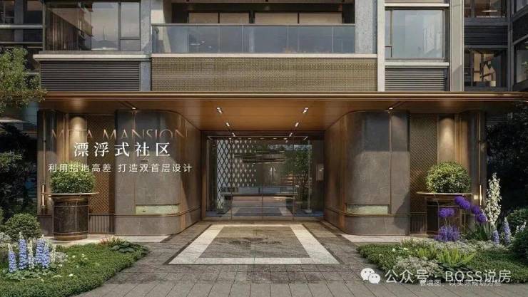 本次小区采用了漂浮社区设计,用造酒店的方式造楼盘,利用抬地高差,打造了双首层设计