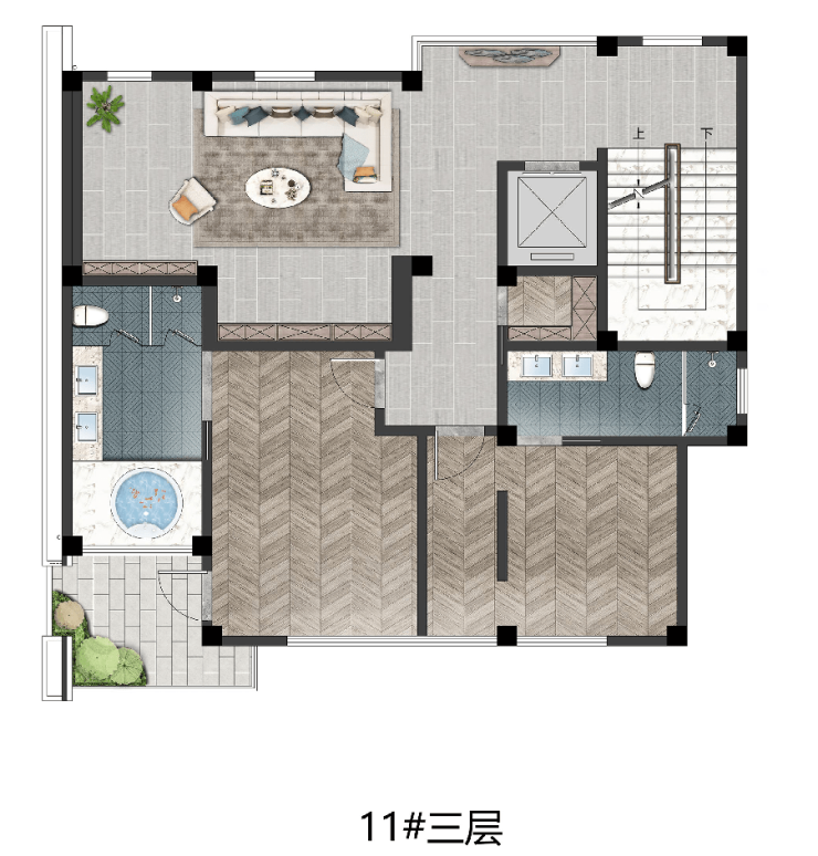 项目北侧50米,8000方商业,设立了24小时便利店、生鲜超市以及咖啡店、智能产品体验街区等轻奢业态。