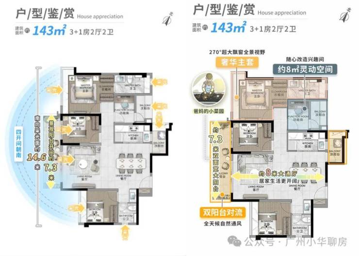 l双面景观阳台+满飘窗,约6.8m面宽超大阳台,景观资源最大化利用