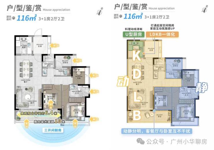 l超大方厅,动静分明,南向阳光方厅,客厅与卧室分开布置
