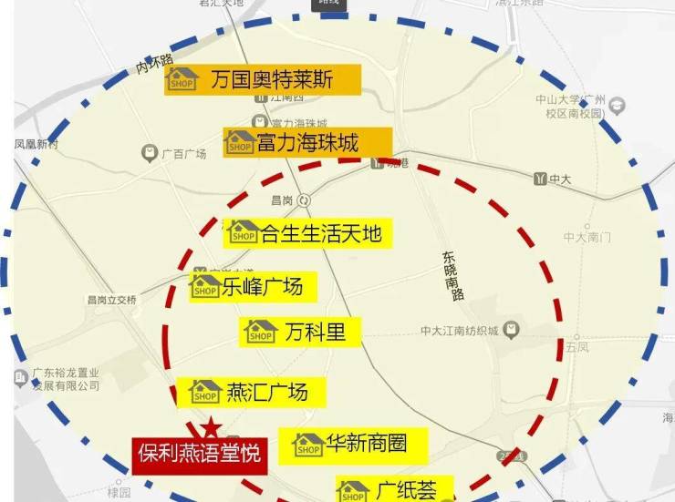 保利燕语堂悦位于氛围成熟的海珠西老城区,周边不缺乏大型的商业,比如有综合体方圆333、乐峰广场、广百等等,可以说是海珠最成熟的商业都在项目周边了,烟火气十足,不愁吃喝玩乐。