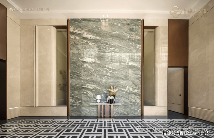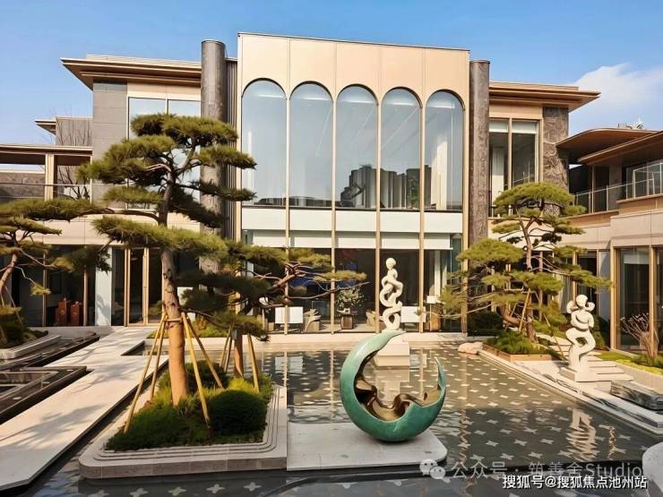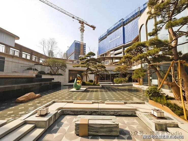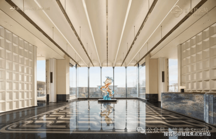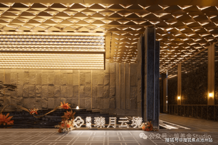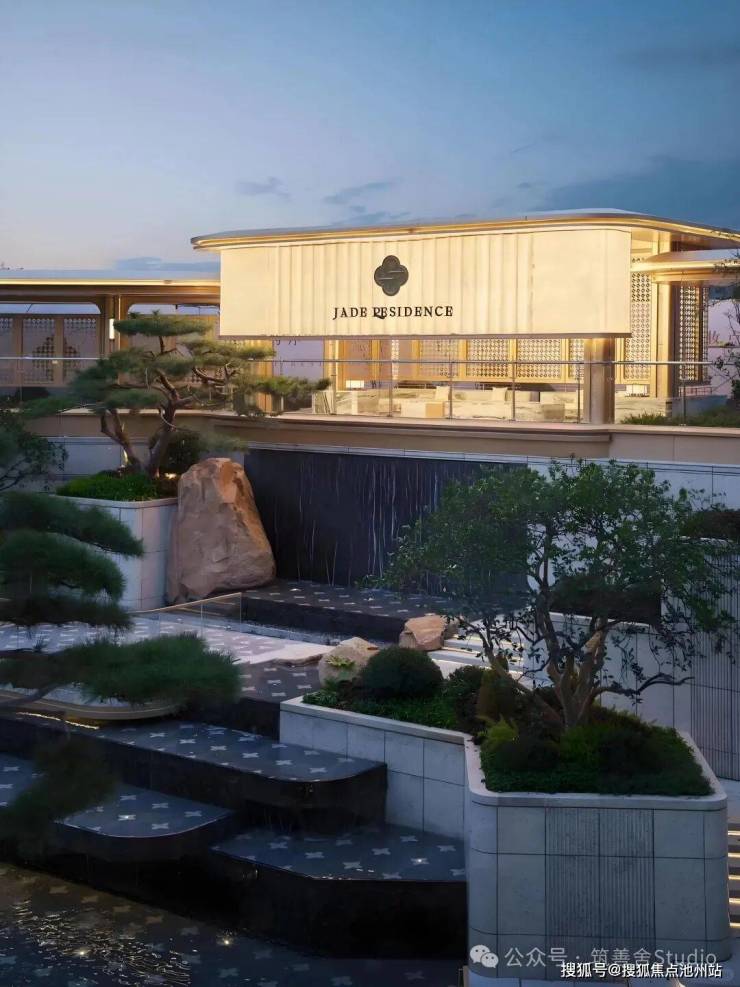 以立体山水艺术为主题,巧妙利用地形高差,打造出层次分明的山水画卷。布局上以硬质景观为主,融合度假酒店风情的戏水池,点缀少量绿植,营造出独特的空间美感。空间衔接方面,与会所、风雨连廊、地下光厅无缝连接,形成“地上—下沉—地下”三重归家体验,每一层都充满仪式感与私密性。功能上,这里是景观核心区域,也是会所入口的过渡空间,旨在强化归家的仪式感与私密体验。