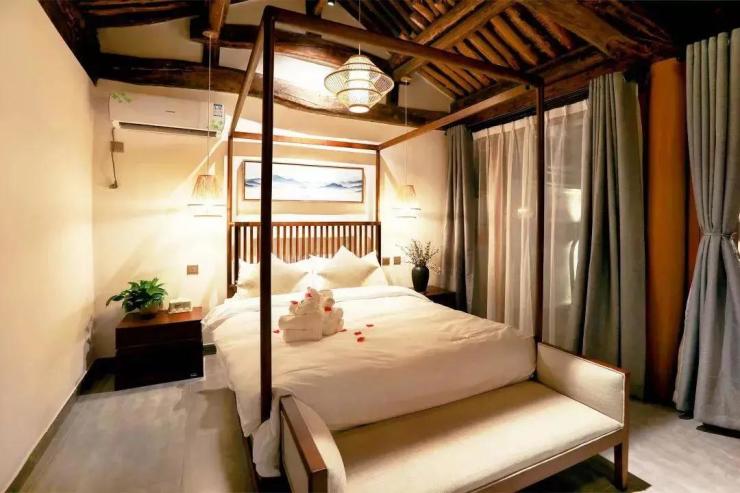 民宿室内的装修,采用了古朴恬静的新中式装修风格,让其更具中式文化底蕴,舒适美观。