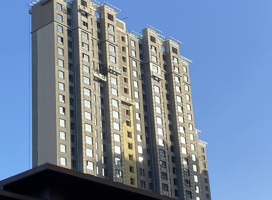 但随着”停工“事件的爆发,大家也是在无限担心中。今天上午小编在项目周边转了一圈看到,项目已经进入正常施工状态。工地有施工车辆运输物料进进出出,楼幢外墙也有多组工人在进行外立面的施工。