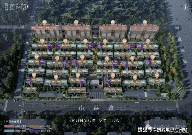 琨悦廷打造仅有289户的纯粹高端低密社区。南侧为115席建面约200㎡、220㎡、233㎡联排别墅;北侧为4栋总高11F,建面约143㎡洋房,仅此174席。