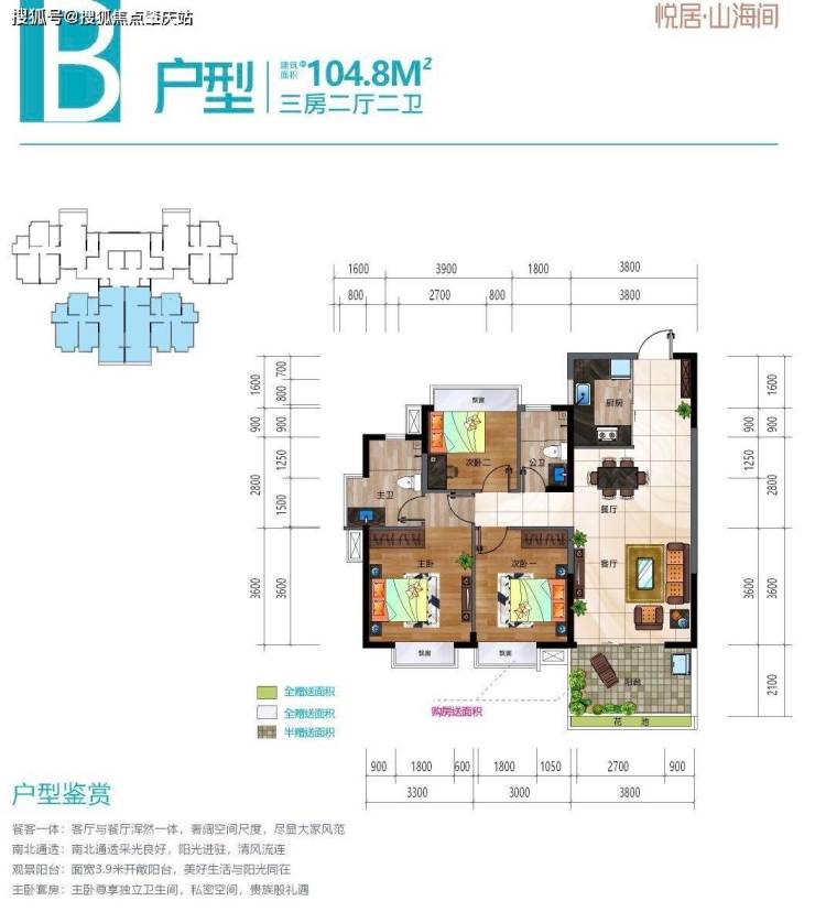 在售户型格局:三房两厅两卫,两房两厅一卫.