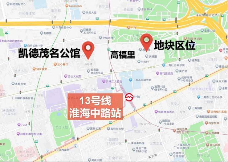 本次公示的地块位于淮海中路黄金路段,直线距离约200米地铁13号线淮海中路站。