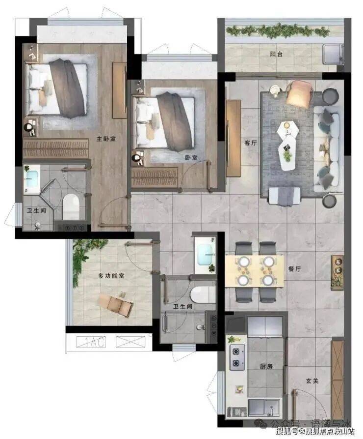 A户型 建面约90㎡ 2房2厅2卫