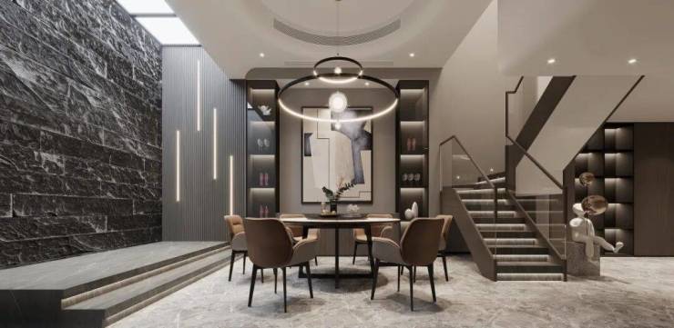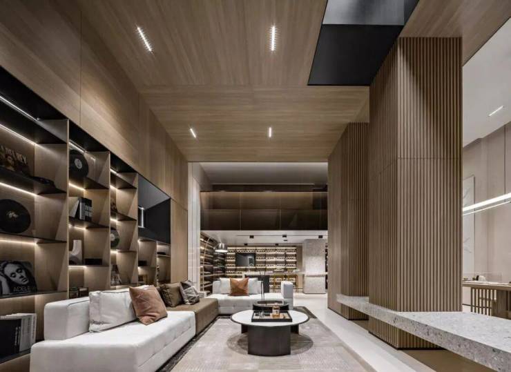 采用现代轻奢风格,以大面积玻璃幕配置金属线条,营造奢侈品般通透质感。