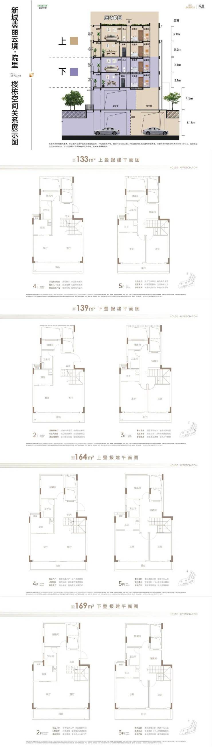 约133-170㎡跃层叠墅采用上下两叠设计,并均赠送首层空间、南北院落与地库空间,上叠更带星空露台,整体可利用面积超300㎡。
