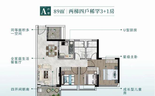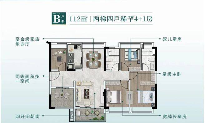 户型设计实用且有亮点。在售户型 89 - 112㎡ ,都是 + 1 房设计,空间利用率高。89㎡做到全南向 4 房,百米楼距千米视距无遮挡,采光和视野极佳。112㎡纯板式 5 房,南北通透对流,南北双向望江,双向视野都很棒。整体户型布局合理,得房率高,满足不同家庭的居住需求,无论是刚需家庭还是改善型家庭,都能找到适合自己的户型。