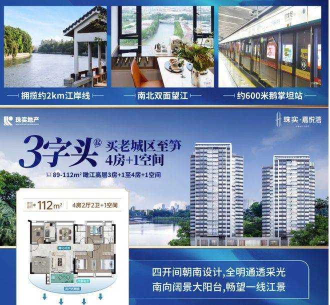 珠实嘉悦湾的爆点可不少。首先价格超诱人,刚需价格就能买到品质高配的滨水豪宅。楼王加推产品亮点十足,南北双江景,南北通透,两梯四户,22 层低密度,还是准现房,在老城区实属罕见。户型实用,89㎡全南向 4 房,百米楼距千米视距无遮挡;112㎡纯板式 5 房,南北通透对流,双向望江视野佳。交通便捷,600 米内有 “换乘之王” 8 号线双地铁站,快速畅达市中心各区。教育、商业、医疗配套一应俱全,周边还有华为广州研发中心、广州白云站 TOD 等利好不断升级。再加上国企珠实地产保障,精装现楼交付,安全感满满,无论是刚需还是改善型购房者都很难不心动。