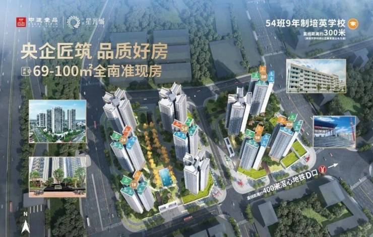 中建星光城对面54班九年一贯制中小学已开工,预计2024年建成,距本案直线距离仅约300米,孩子上学就在家门口,中建星光城业主人户一致优先入读。