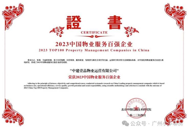 中建壹品物业荣获“2023中国物业服务百强企业”、“2023中国国有物业服务优秀企业”称号