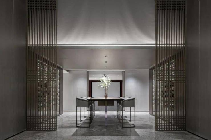 在主入口的营造上,上海桃花源采用了全国罕见的壮阔空间尺度与环抱式设计,三面环廊,四面围合,构建出一个充满东方礼序的迎宾庭院,彰显尊贵与庄重。