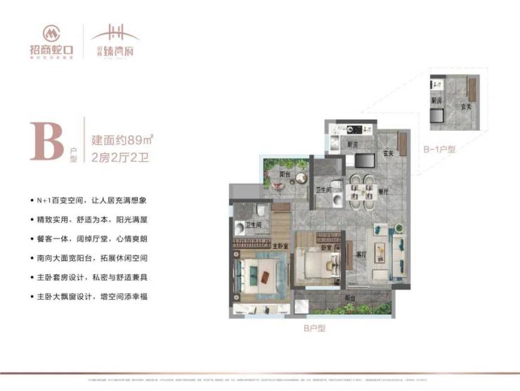 目前,招商臻湾府在售建面约79㎡-105㎡二至三房,产品选择丰富,将实用性和功能性拉到满格,给到居者非凡的居住感受。