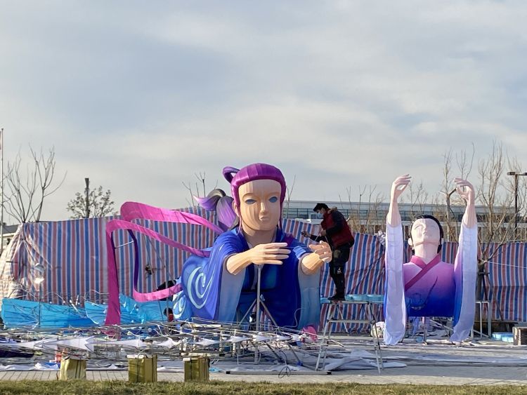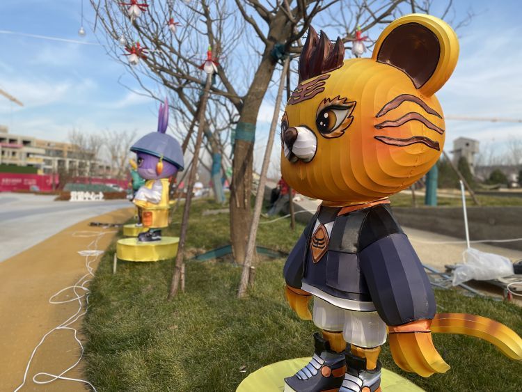 12月7日下午,在淄博华侨城欢乐山川,记者看到,一些彩灯已经制作完成,十二生肖立灯憨态可掬,还有可以互动打卡的“新年日历”彩灯等。根据牛郎织女传说创作的“鹊桥之约”彩灯正在紧锣密鼓地制作,造型初现,色彩夺目……