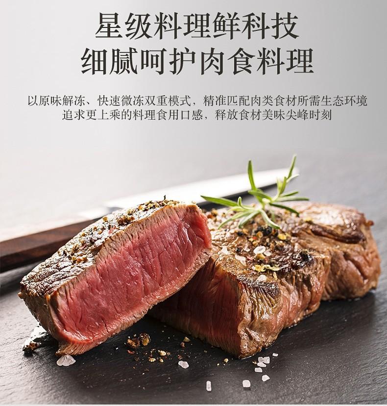 这款冰箱能让食物回归本真即新鲜,搭载的星鲜料理舱,以低温冰鲜、原味解冻、快速微冻三种料理模式,精准匹配肉类食材所需生态存储环境,使不同状态的肉类食材达到美妙的食用口感,释放食材优质鲜味,与追求原生态的侘寂风生活可谓相得益彰。