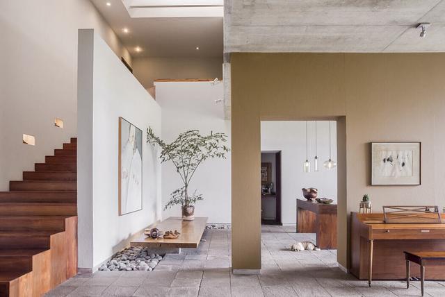 当然,侘寂之美,还可以体现在各个细节设计之中,比如简约式的吊顶,素雅的墙面,别致的绿植,等等。总之,素色的空间、简单的家具、微水泥……打造出的是一个朴素却充满烟火气的家。置身于窗明几净的屋子,捧一杯最爱的热茶,同爱的人谈天说地,悠然闲适,无需奢华,不用修饰,朴素大方也能美得令人心醉。