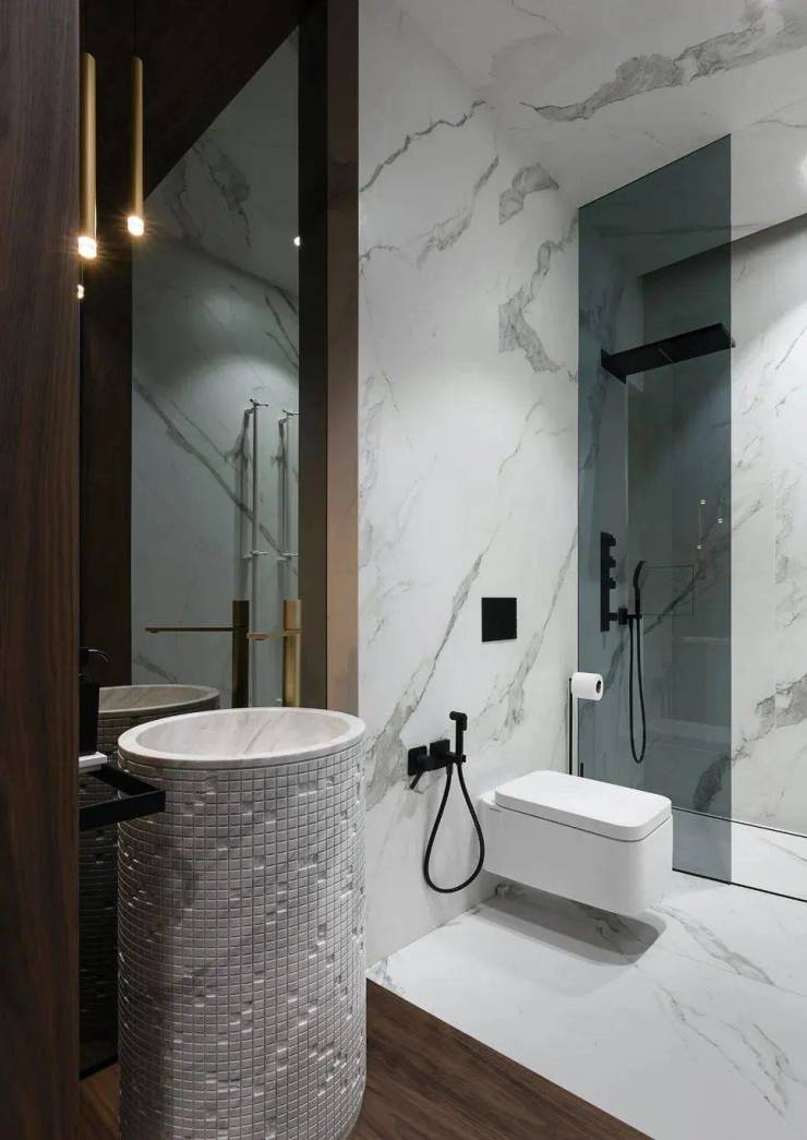主卫地板和墙都是以白色大理石为主,高端大气,精致与时尚,让整个空间更有时尚艺术感。