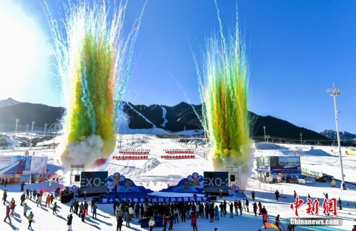 中新社乌鲁木齐12月3日电 (苟继鹏)第十九届乌鲁木齐丝绸之路冰雪风情节3日在天山脚下的丝绸之路国际滑雪场开幕,以“骄阳看雪乌鲁木齐”为主题的乌鲁木齐冰雪欢乐季也正式启动。
