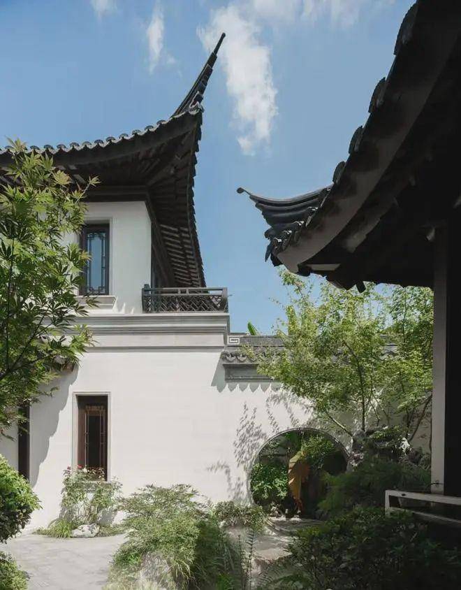 - 建筑风格:纯正两层中式合院,融合江南粉墙黛瓦与传统回纹、木窗棂元素,门洞造型与灯具(杨桃灯)均为专利设计(专利号:ZL202130810538.X)。