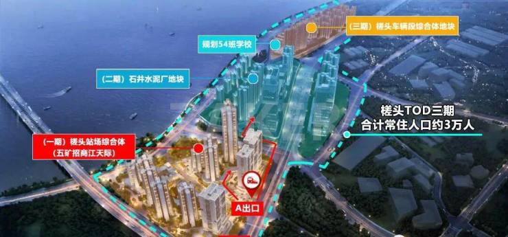 槎头综合体片区总开发建面超300万㎡,共分三期开发,其中槎头站场综合体与槎头TOD (江天际)为一期、石井水泥厂收储地块为二期、槎头车辆段综合体项目为三期,未来将打造超越广船、广纸规模的大体量沿江宜居新城。