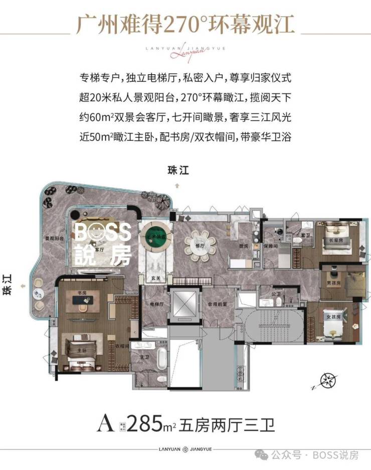 【产品面积】:约193㎡/285㎡瞰江艺术大宅