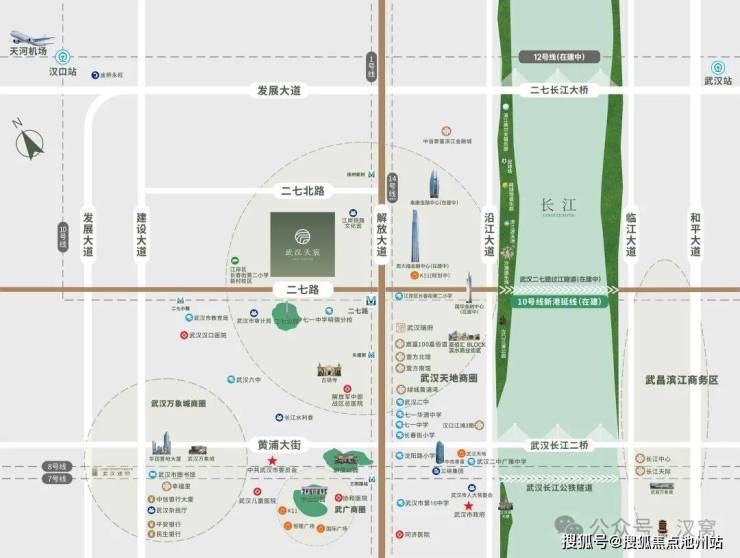 交通便利,立体出行:项目距离地铁1号线二七路站约100-350米,步行可达,未来还有10号线在此交汇,形成双地铁格局。自驾方面,“三横(沿江大道、解放大道、建设大道)两桥(长江二桥、二七长江大桥)两隧(长江公铁隧道、二七路过江隧道)”的立体交通网络,贯通汉口内外环。