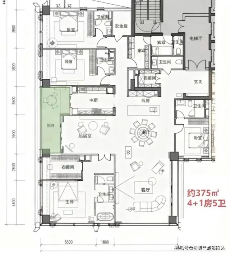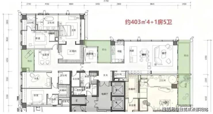 2. 370-403㎡4+1房五卫(高区进阶顶豪户型,42F起,150-200米)