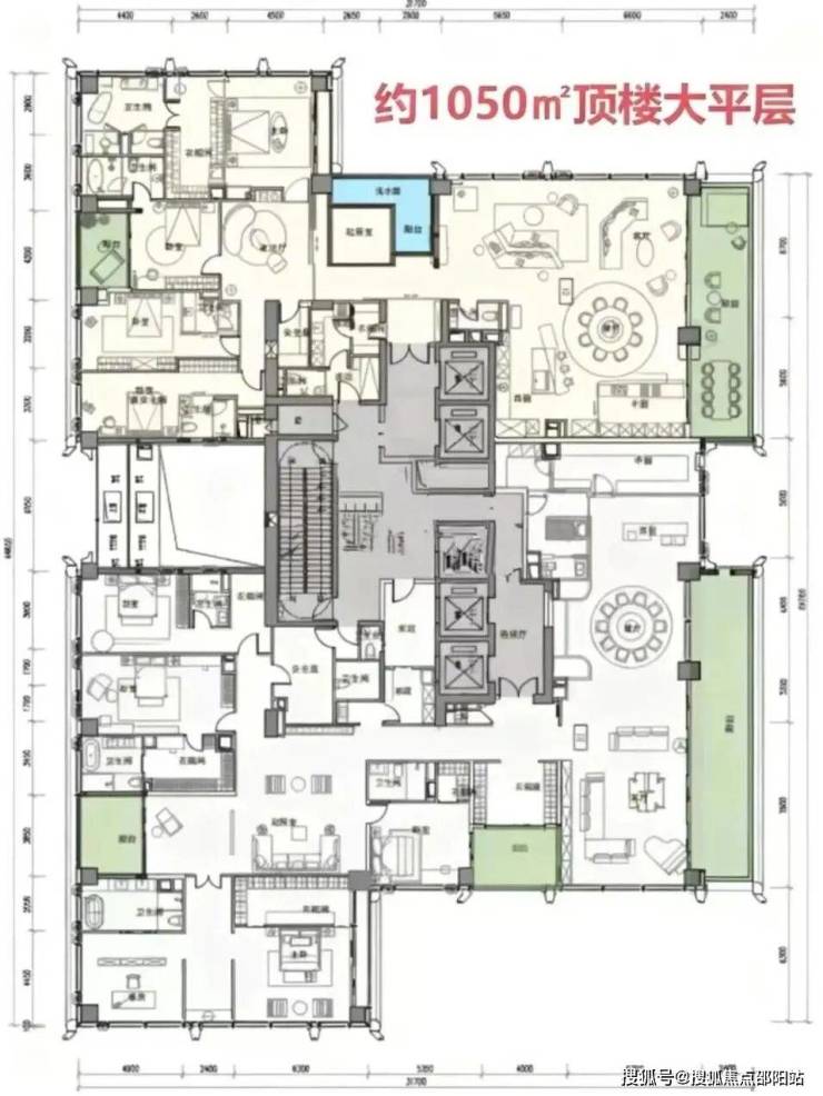 4. 1050㎡左右顶奢大平层(顶楼Penthouse,终极顶豪户型)