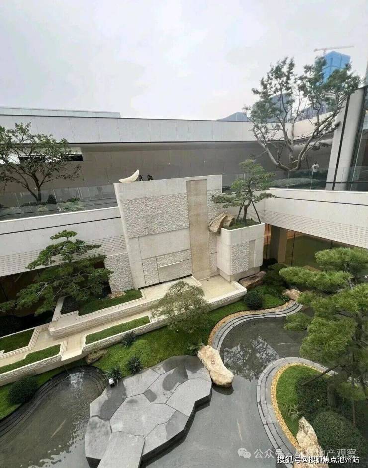 会所庭院以建筑为框,引泉植松,奢造约7米高溪山流瀑,特选6棵造型黑松。将二维的《溪山行旅图》转译为一幅“幽深与静谧、壮丽与宁静”的立体山水画卷。
