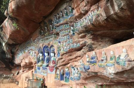 丹霞地貌红砂石崖壁上 凿出200多尊造像