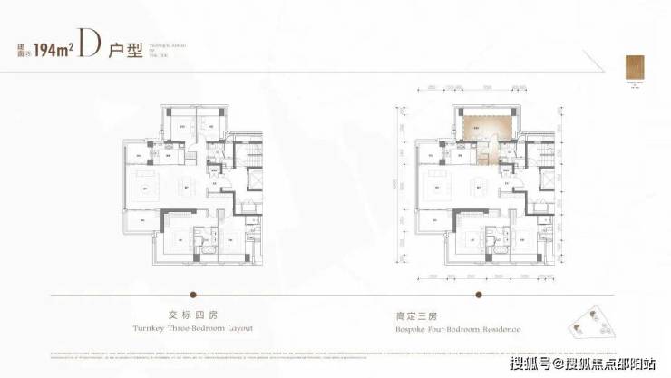 194㎡全景舱户型原报建是四房三卫(双套间)户型,偏厅结合2.4米的新规双阳台,景观面超过270°,观景开间达9.8米。