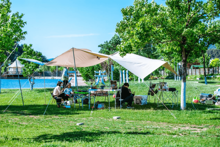 众多露营场地,不仅户外、露营爱好者们可以自带装备交流畅玩,没有齐全装备的露营新手也可以尽情享受露营乐趣。
