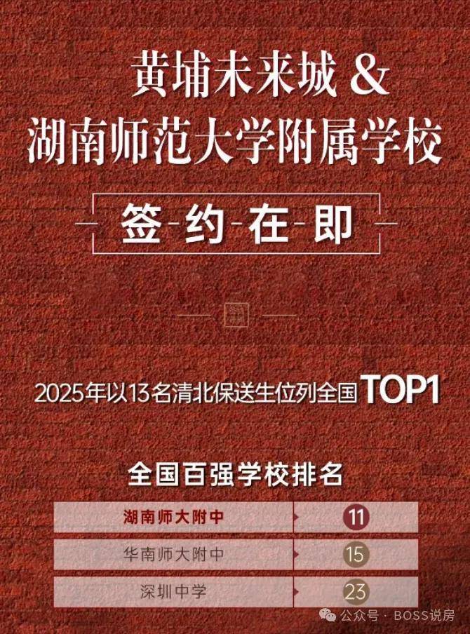 九年一贯制学校已官宣引进湖南师范大学附属学校,小学与首期住宅同步交付