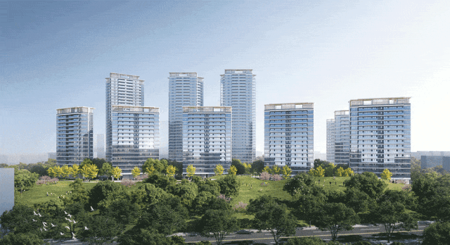 公建化建筑立面,融合现代与摩登风情,挺拔的建筑形体,搭配大面积玻璃与金属线条,打造“灯塔之冠”美学,以未来质感焕新城市人居封面。