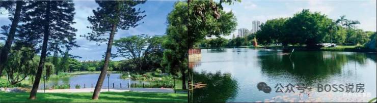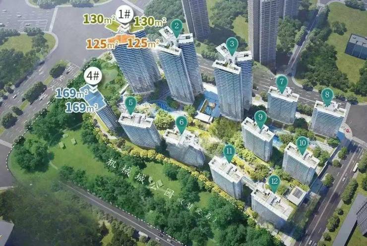 公园绿地:周边 3km 范围内有 91 个公园,距离最近的仅 239m,小区南侧和西侧规划了与小区体量相当的公园绿地(机械城公园),此外还有街角公园,形成绿色屏障,可有效降噪降尘