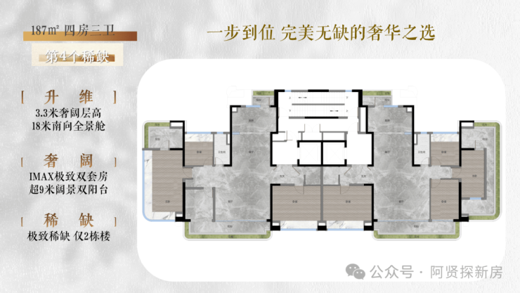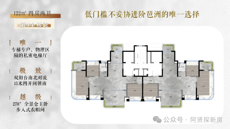 【项目户型】建面约122-187㎡T2板式全景舱大平层1、建面约122m²跃升低密4房