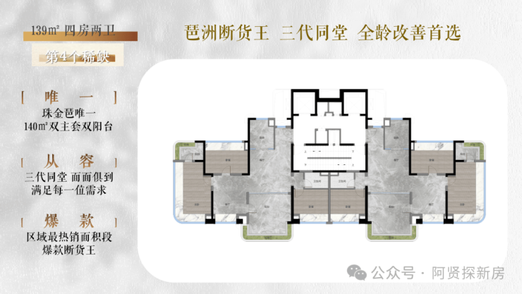 ▍首开楼王尖货,抢占琶洲南“头等舱”✓ 保利天奕首推地块为02地块,最大面积最完整地块,包含中轴景观,最宽楼间距,以及最舒适的楼栋空间。✓ 面积段涵盖约122、139、187㎡,都是新规户型,均为南北对流双阳台四房,专梯入户,低密纯粹,非常值得期待。