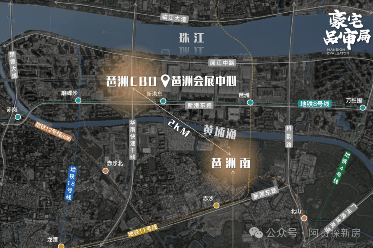 【1KM内享受国际品质生活区】『立体交通』1港澳客运口岸+2城轨+4地铁+5横6纵+5隧道,湾区畅行无阻▸地铁:距琶洲/赤沙站步行约800米(百度地图测量),4/8/11/18号线换乘,连通11号线接驳全广14条地铁线;▸自驾:东侧规划会展东路,直达琶洲会展区,缝合琶洲CBD,自驾可快速上新滘东路,通达全城;