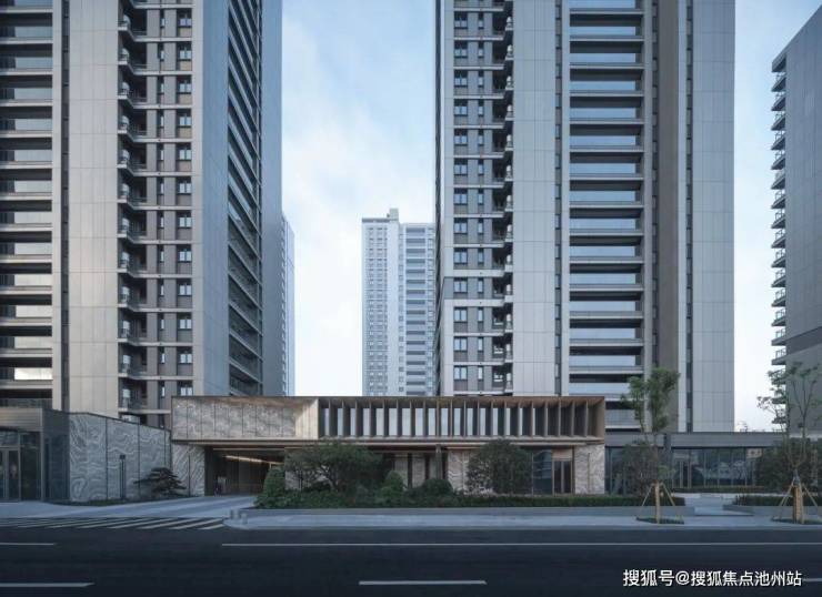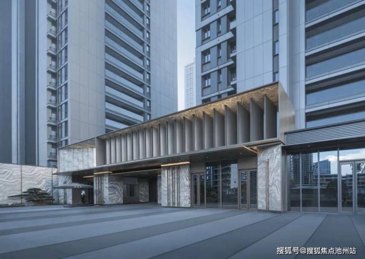 悦未来通过对归家路径的精雕细琢,期望创造出一种仪式感十足的归家体验。为提升社区主入口的整体精致度,华润置地·悦未来的主入口大门头采用了星级酒店中惯用的水云纱石材,其细腻的纹理与温润的色泽为空间增添了高雅的气质。
