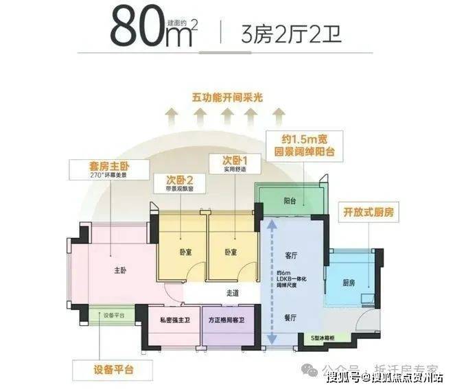 新规升级75㎡做2卫,市场同面积做1卫,卧室180度环幕采光,S型墙体设计冰箱位,使用空间更合理,干湿分离两空间公卫,兼并走廊空间更宽阔,客餐厅一体化设。